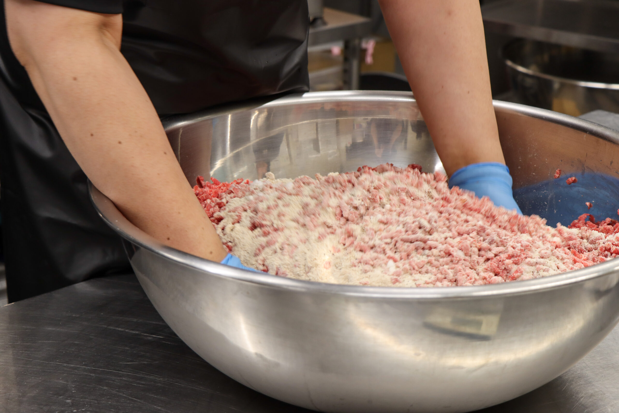 ・ハンバーグを作る(毎日お肉を挽くところから成形まで行っています!)